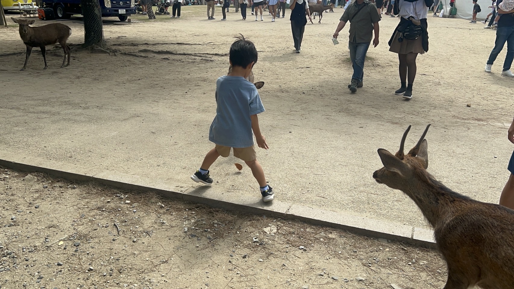鹿に追い掛けられまくっている子供もあちこちにいました(;'∀')
