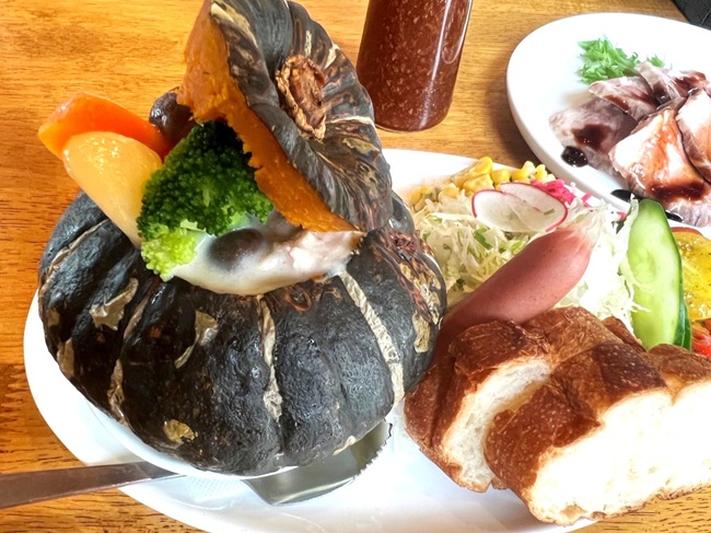 カボチャ丸ごと食べられるので、ボリュームもあってクリームシチューも絶品でした♪
