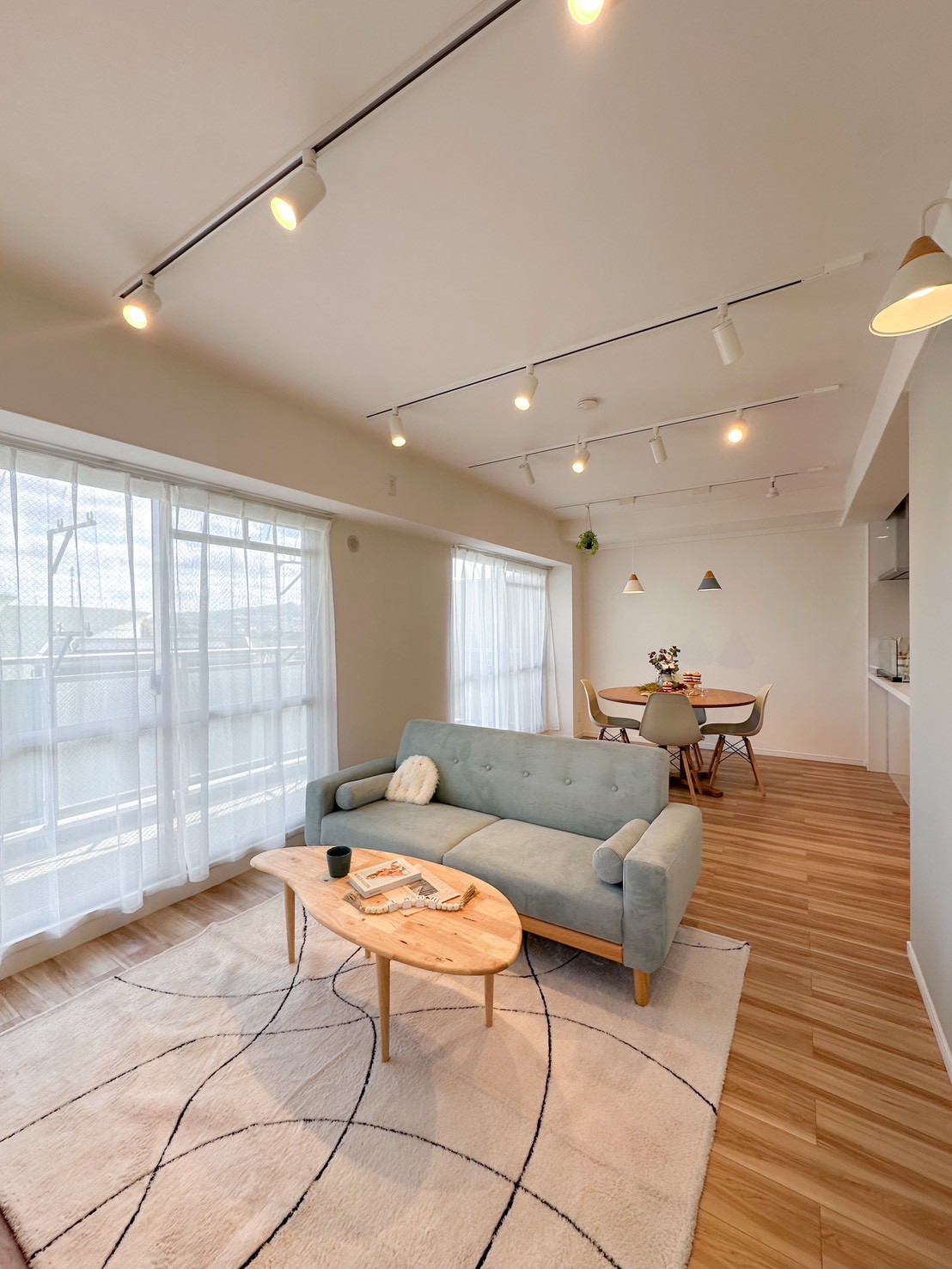 ダクトレール照明を採用し、明るさとデザイン性を両立した北欧風LDK