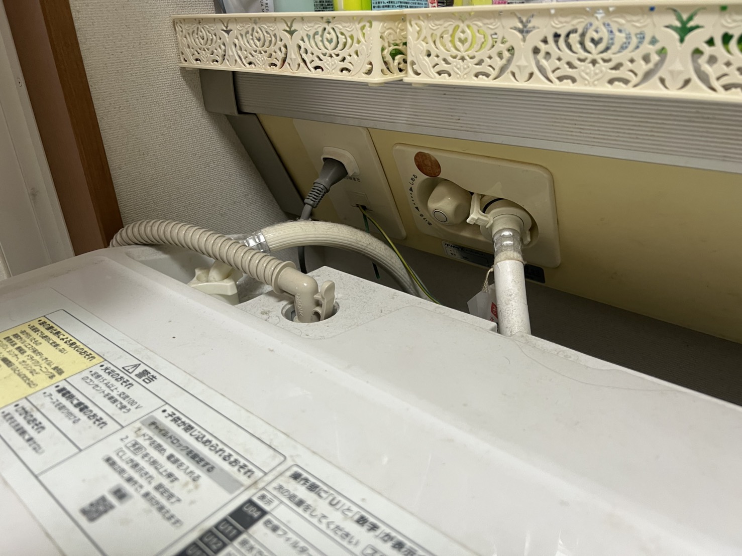 洗濯機用水栓と、コンセントは元々カウンターについていたものを