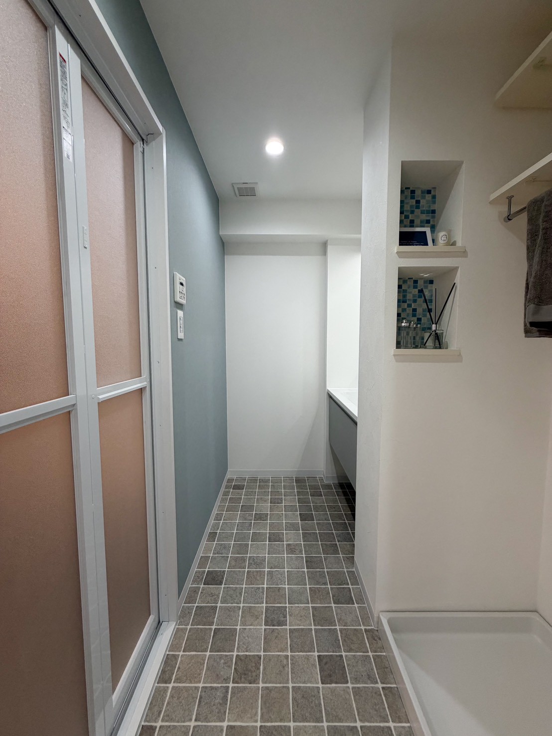 パイプスペースの壁には洗剤も置けるサイズのニッチを加えました!