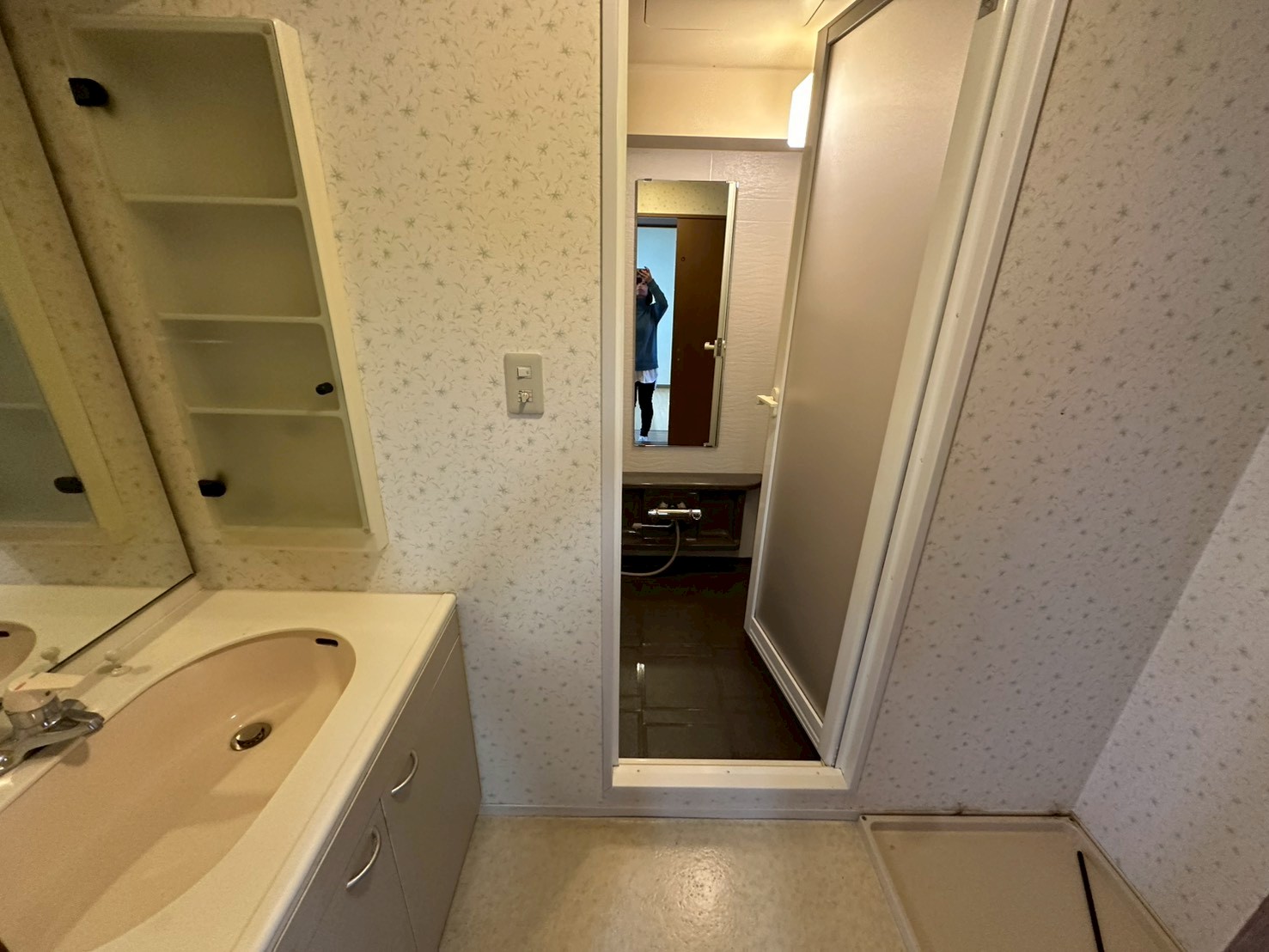 横幅80cmくらいの洗面化粧台と洗濯パンが設置されているだけで
