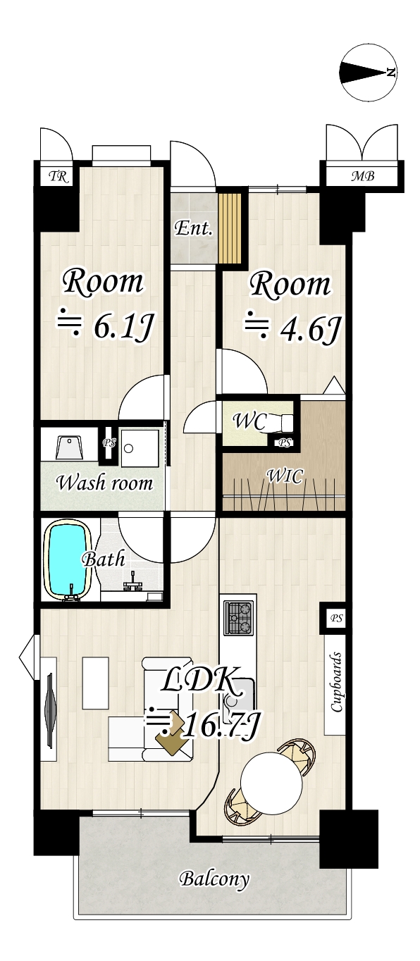 洗濯パン、洗面化粧台を振り分けて、