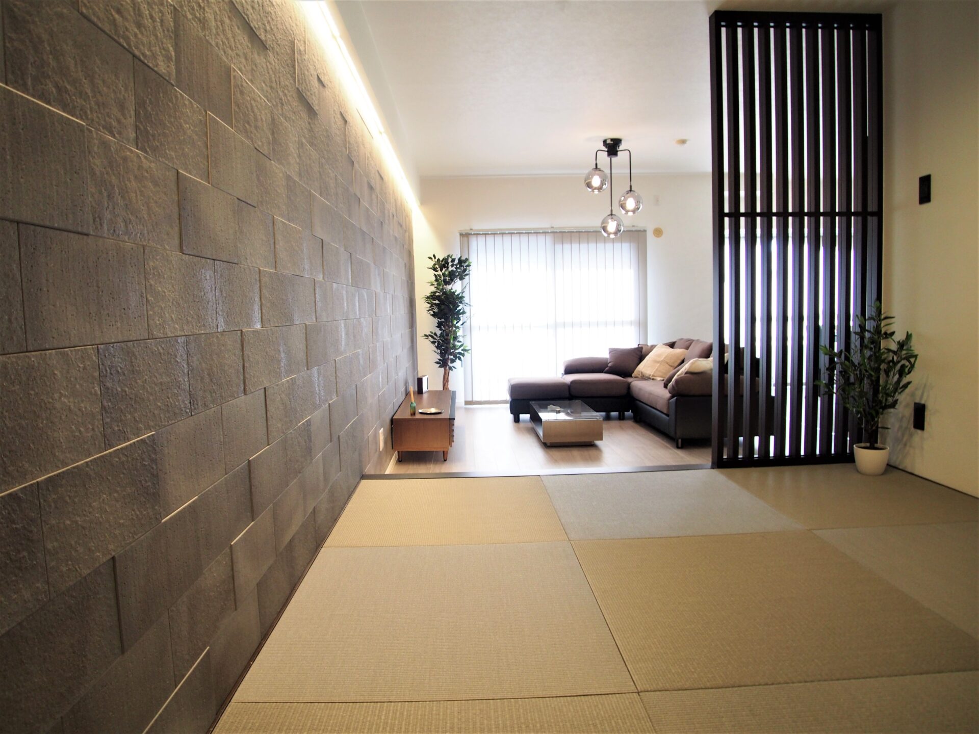 クラフト感のあるエコカラットと格子アクセントパネルで和モダンを愉しむ