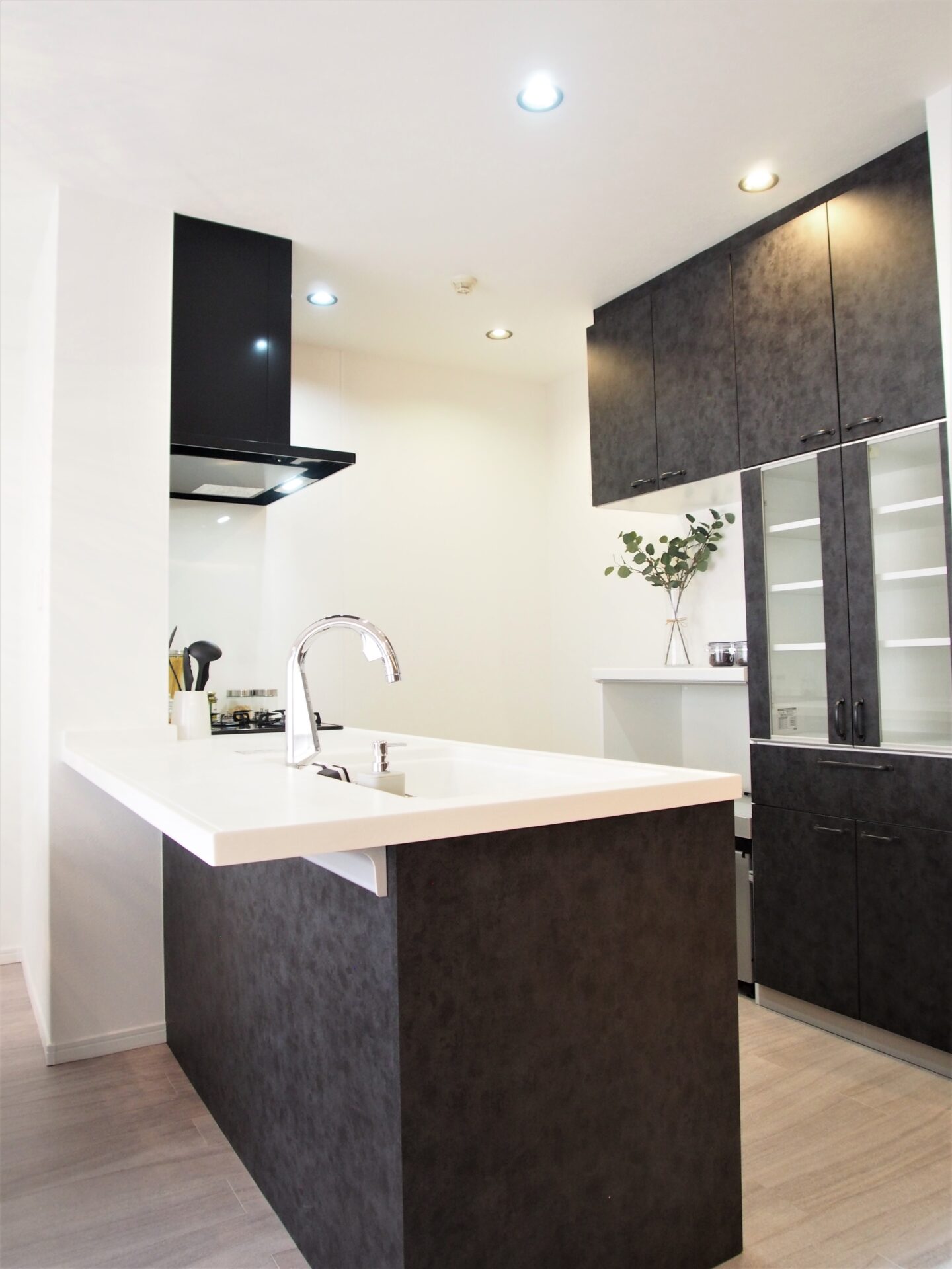 設備や建具、アクセントクロスなどはモノトーンカラーで合わせて統一感を。