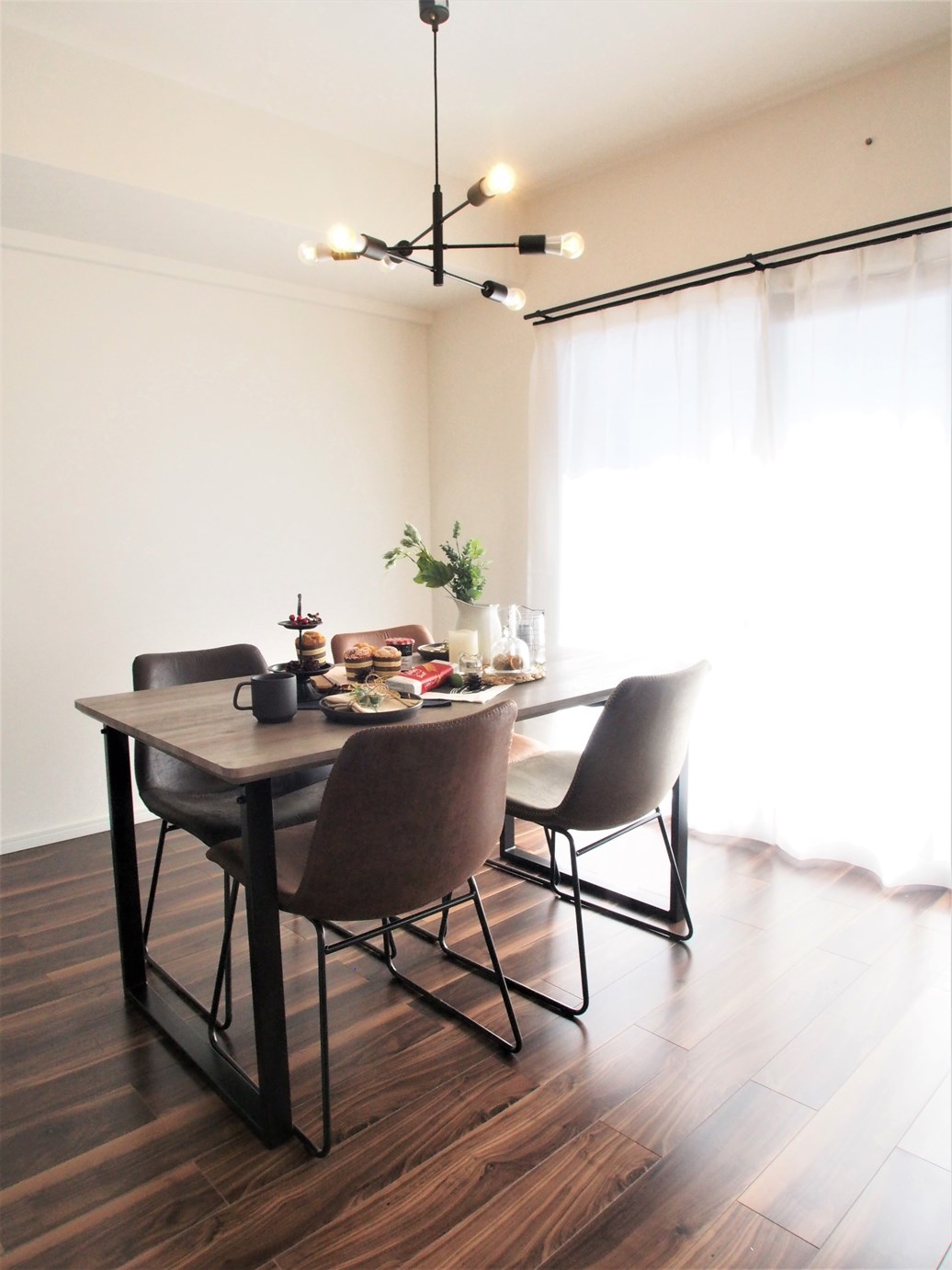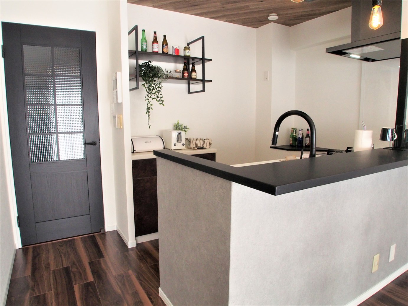ウォルナットカラーの床材×オークブラックの建具の組み合わせでヴィンテージライクなお部屋に変身。