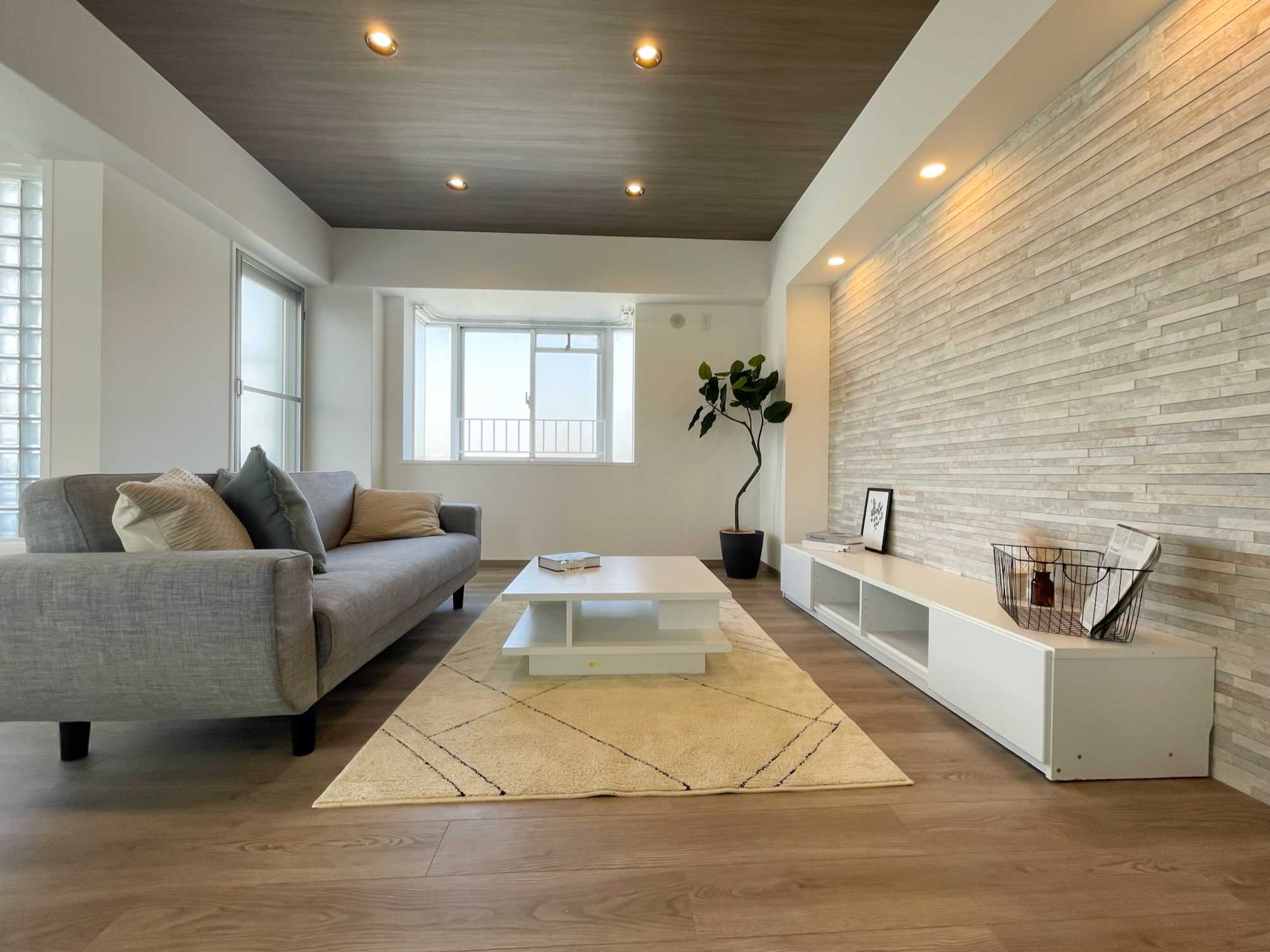 垂れ壁で区切られていたキッチンはオープン化して、LDKを1つの大きな空間にしました。