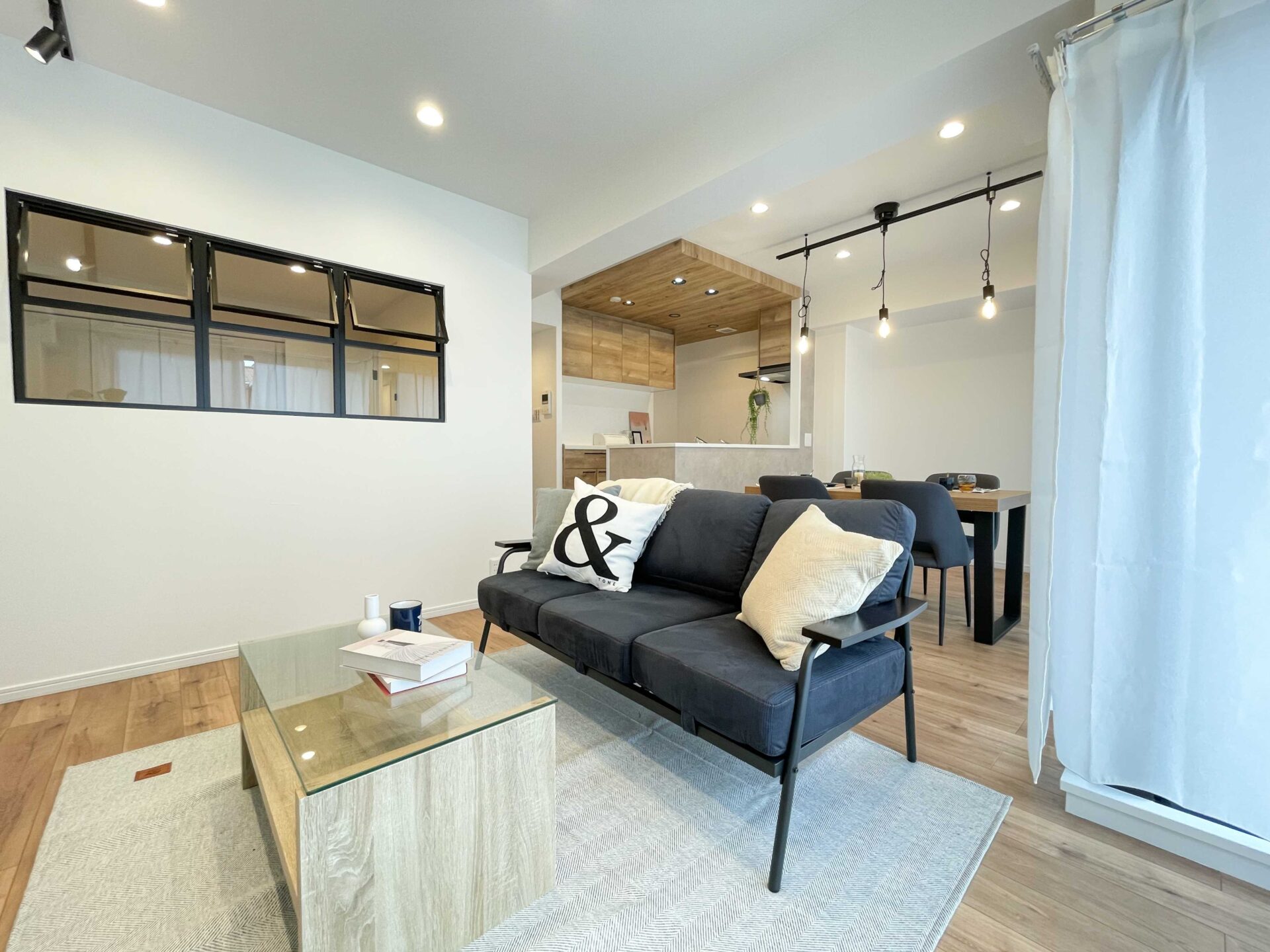 室内中央の和室は洋室に変更し、自然光が取り入れられるように大型の室内窓を新設しました。