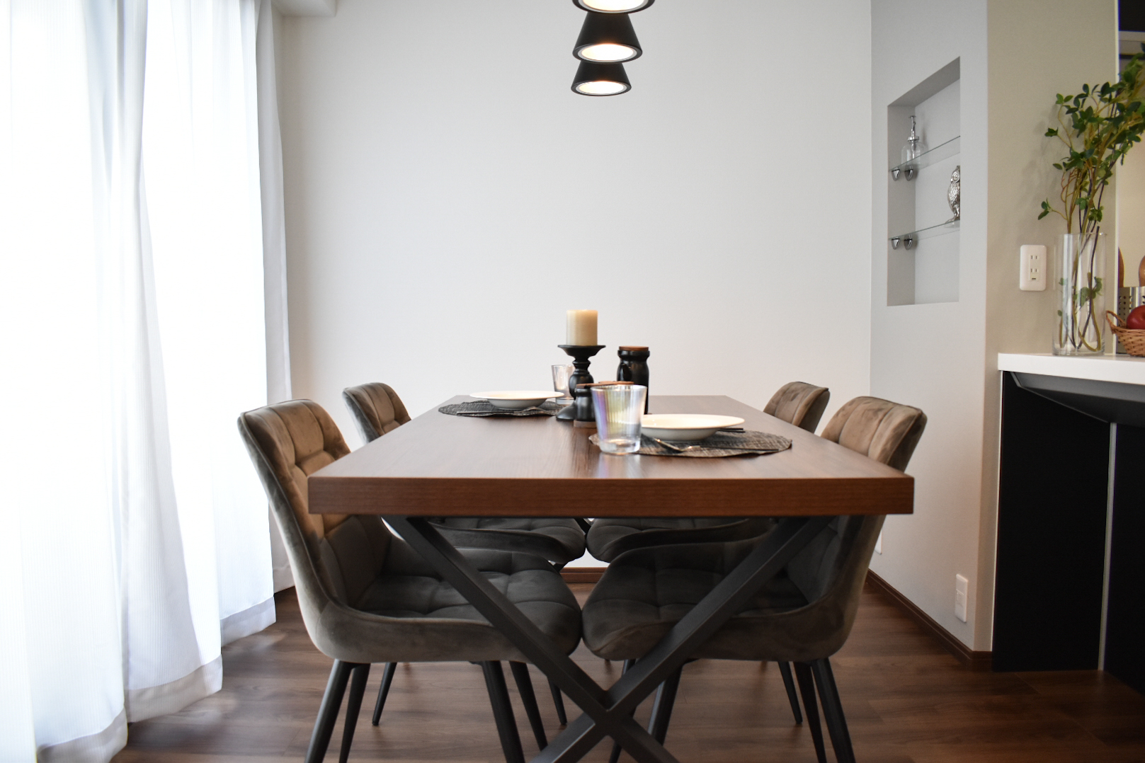 LDKドア、洋室引戸、ニッチ棚…ポイントでガラス素材を取り入れることで、程よい抜け感を演出できます。