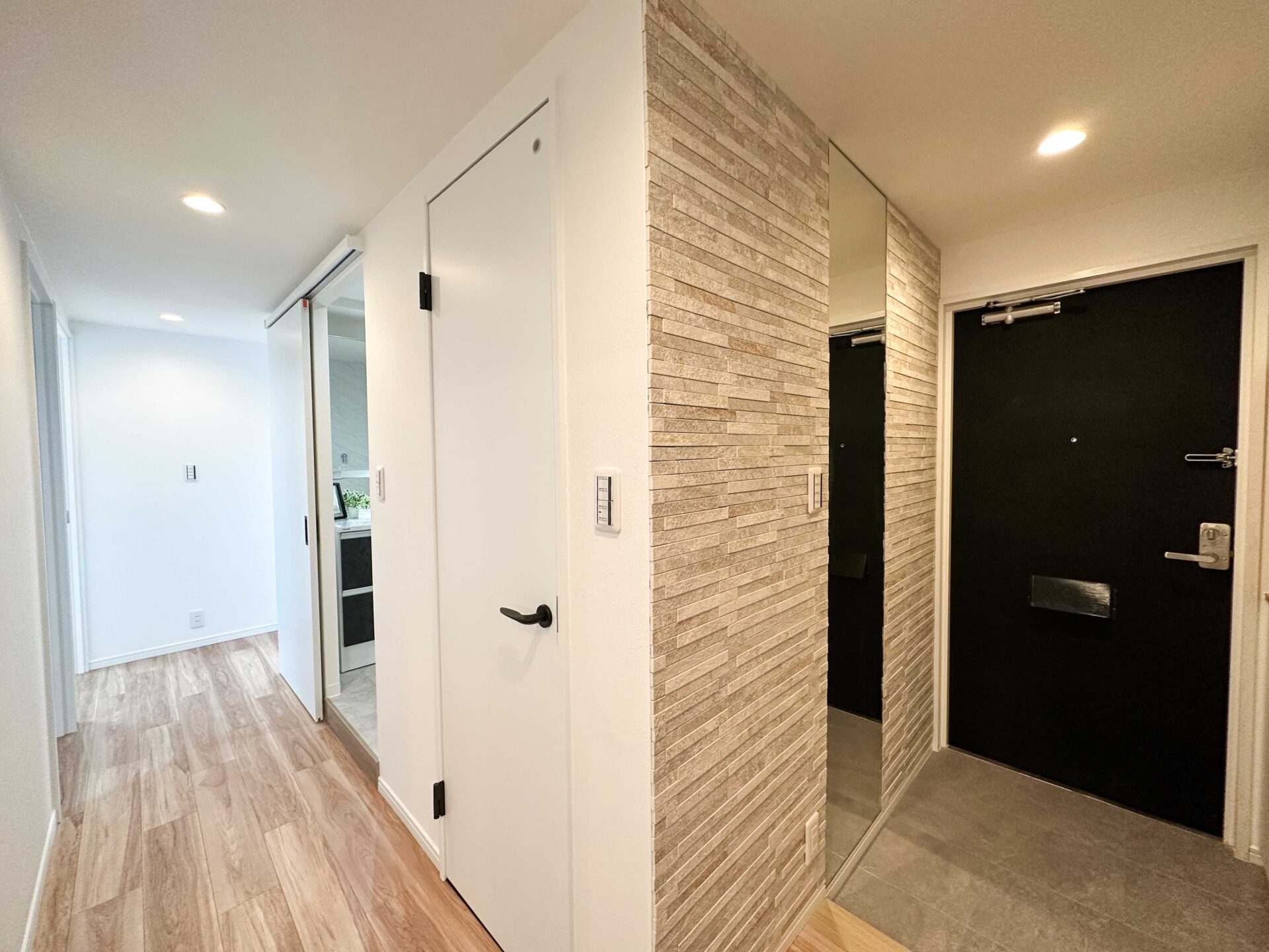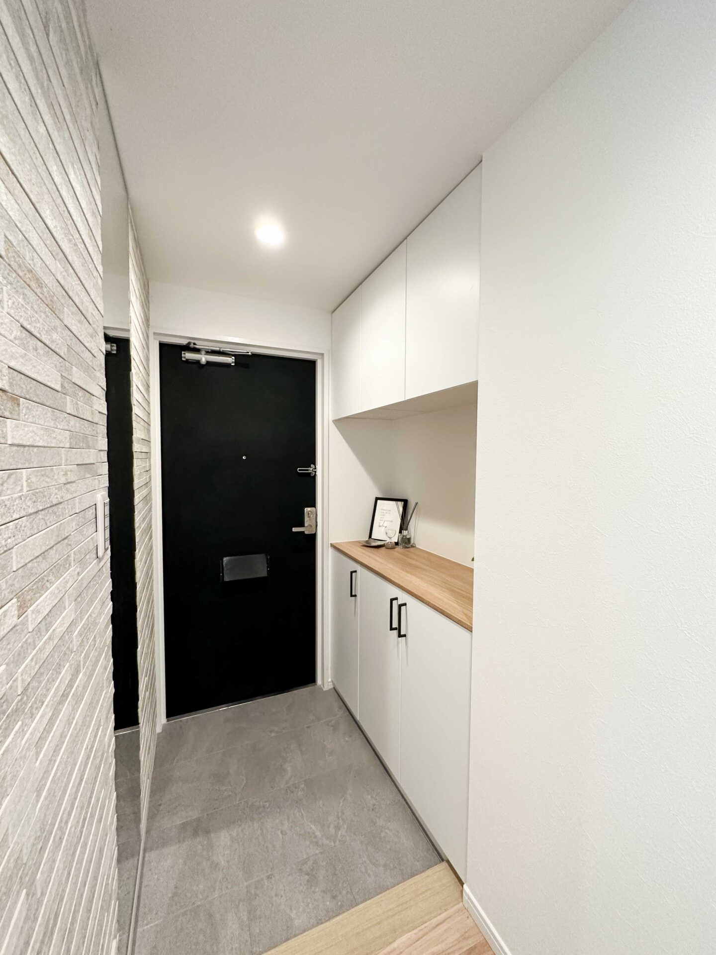 玄関・リビングにエコカラットタイルを施工して海外カフェのような空気感をプラス。