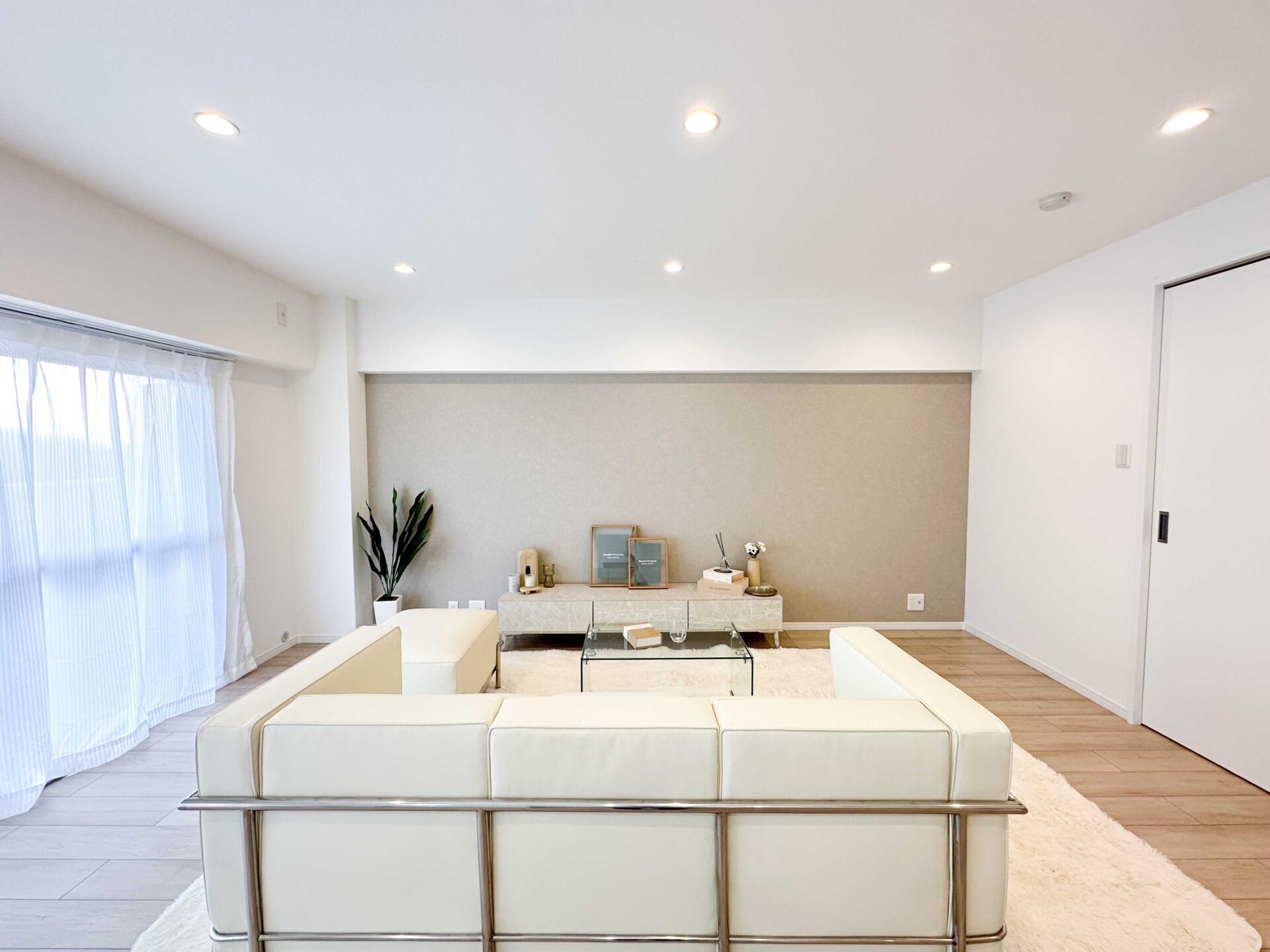 贅沢に使えるLDKは広さ約21帖になり、足を伸ばせるオットマン付きソファを設置してもまだまだゆとりがあります。