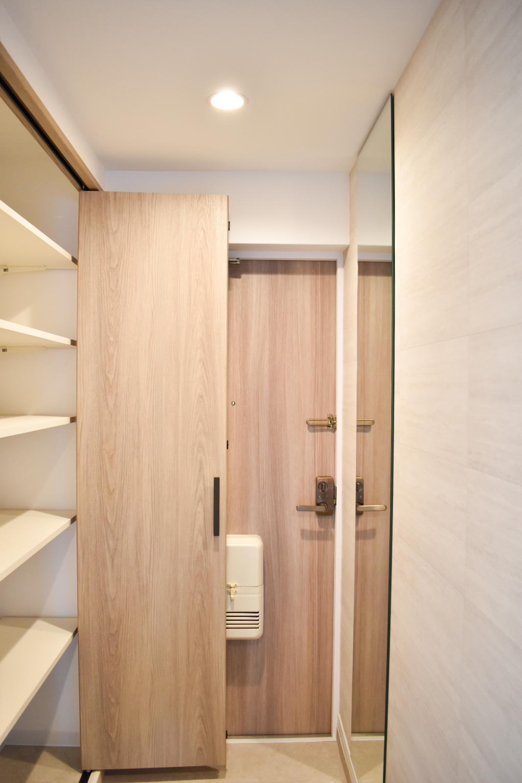 柱があって使いづらかったスペースには可動棚を取り付け、リビングには大型の収納を新設すれば、無駄な空間のない間取りになりました。