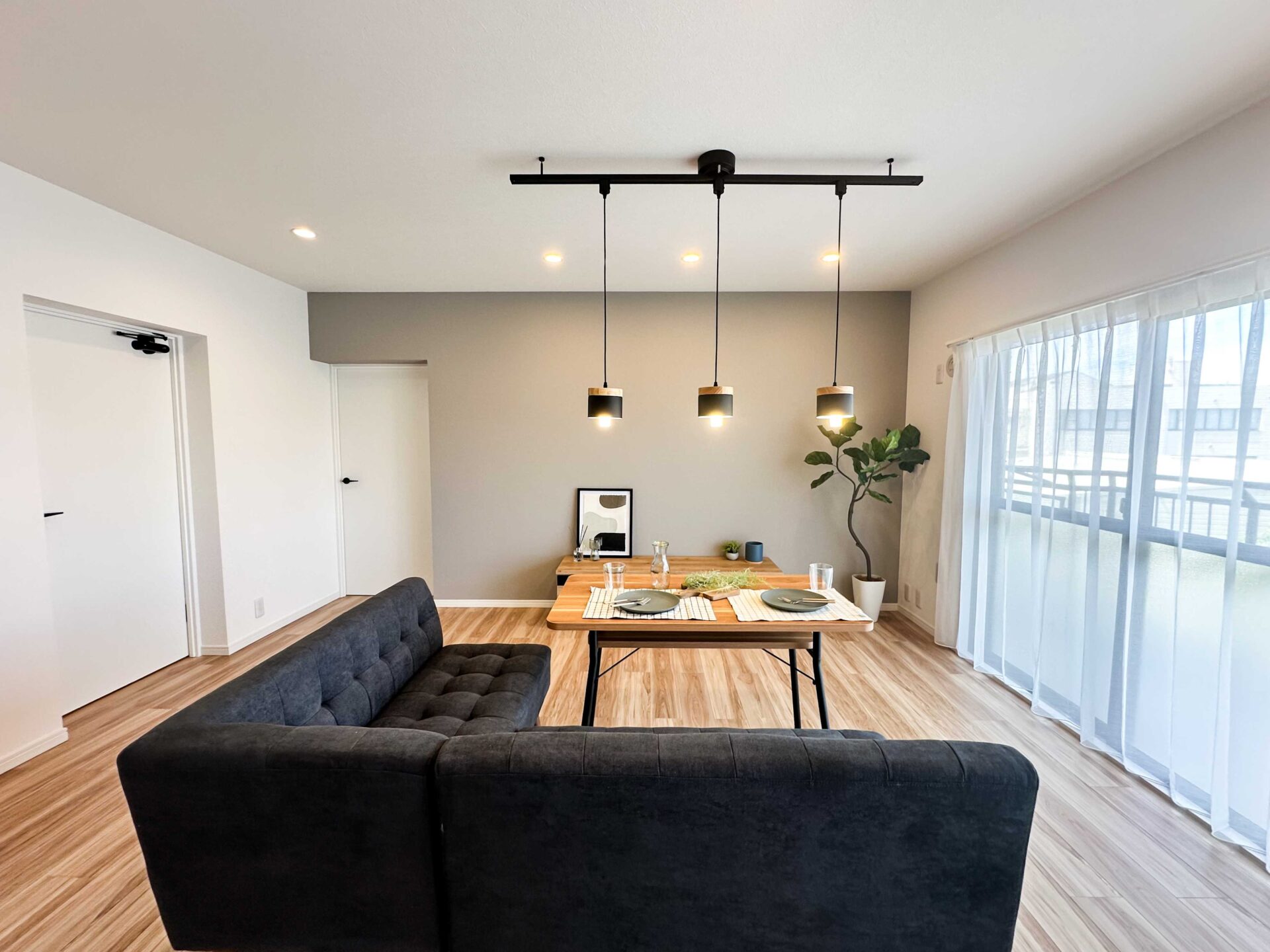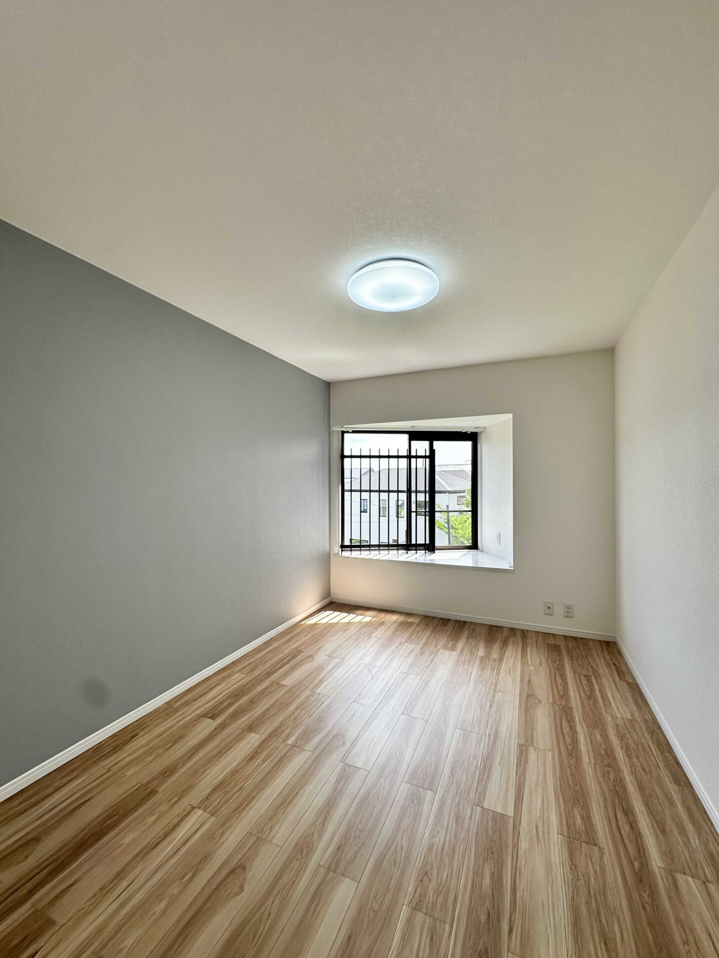 元々4LDKで各居室6帖あった間取りを、6帖2部屋・9帖1部屋・4.5帖のWICへ変更しました。