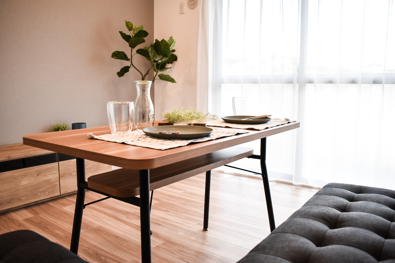 キッチンは壁付けのままカップボードを新設して、収納量が増えました。