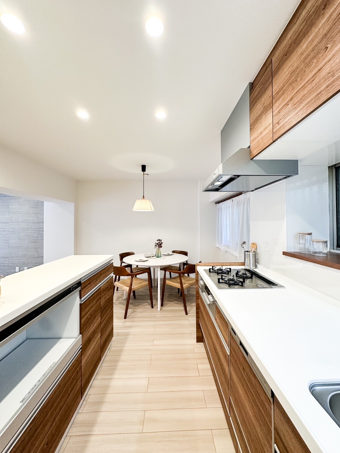 キッチンは壁付けのまま、カップボードの新設でカウンター風に。