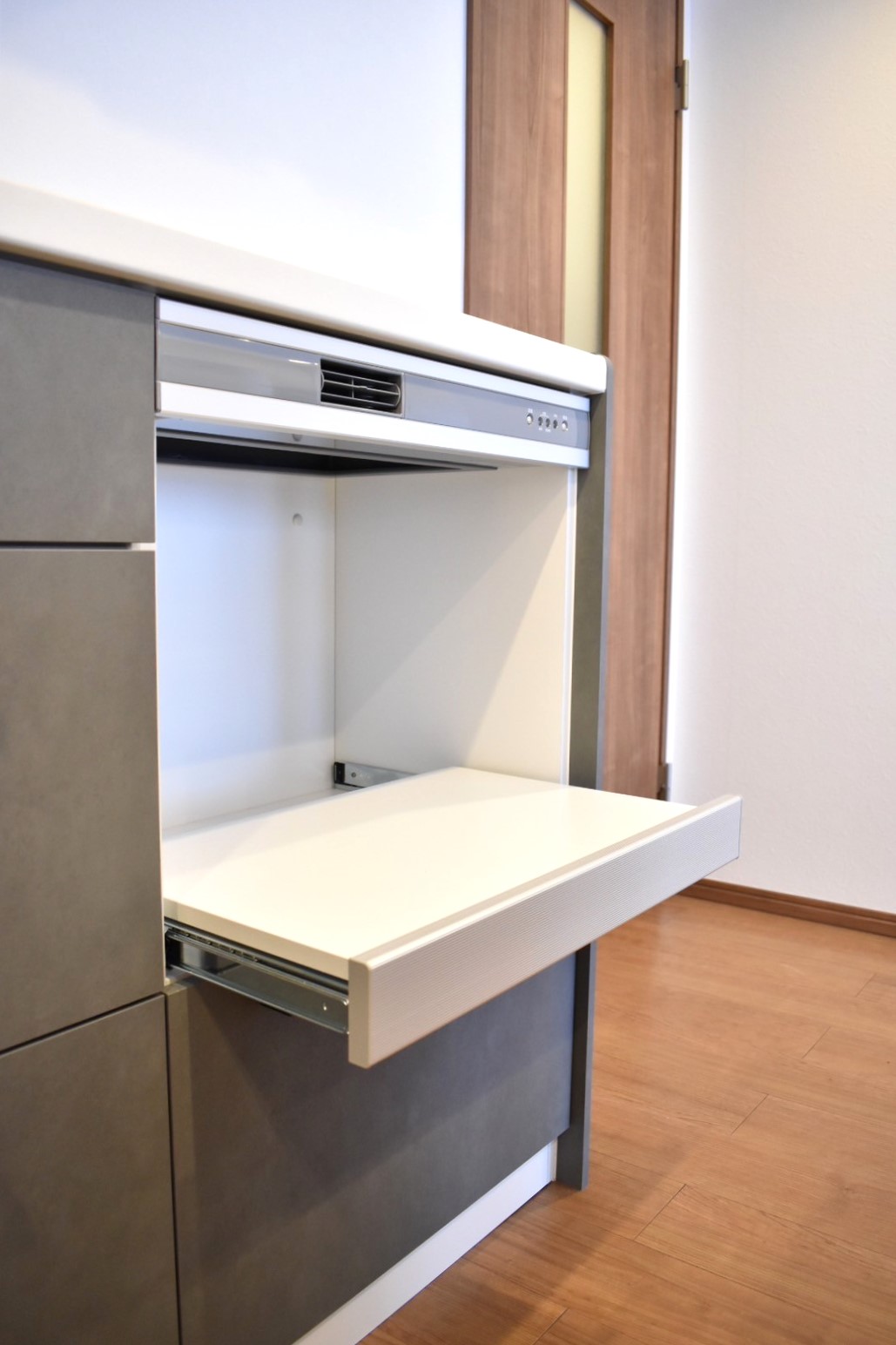 キッチンスペース自体を広く取り、カップボードの新設で収納量もUPしました!