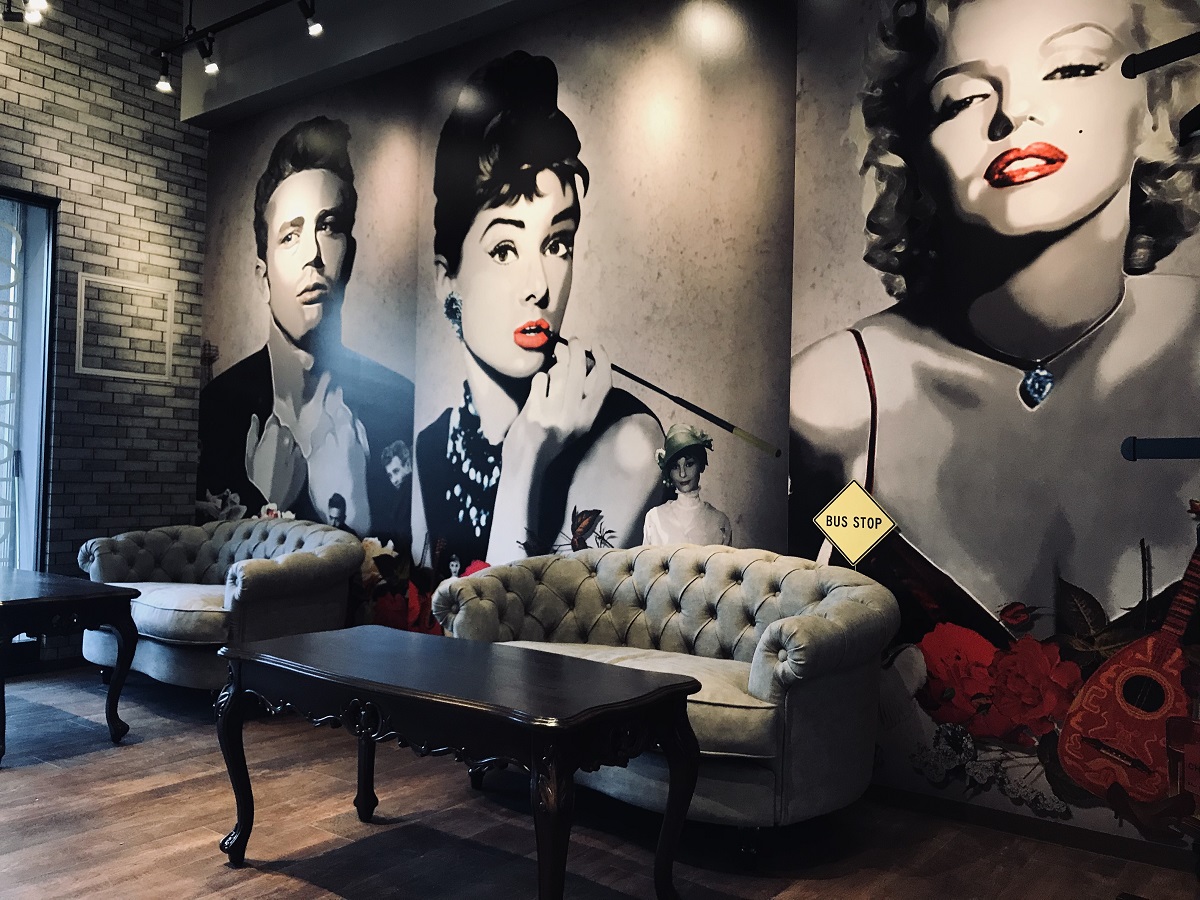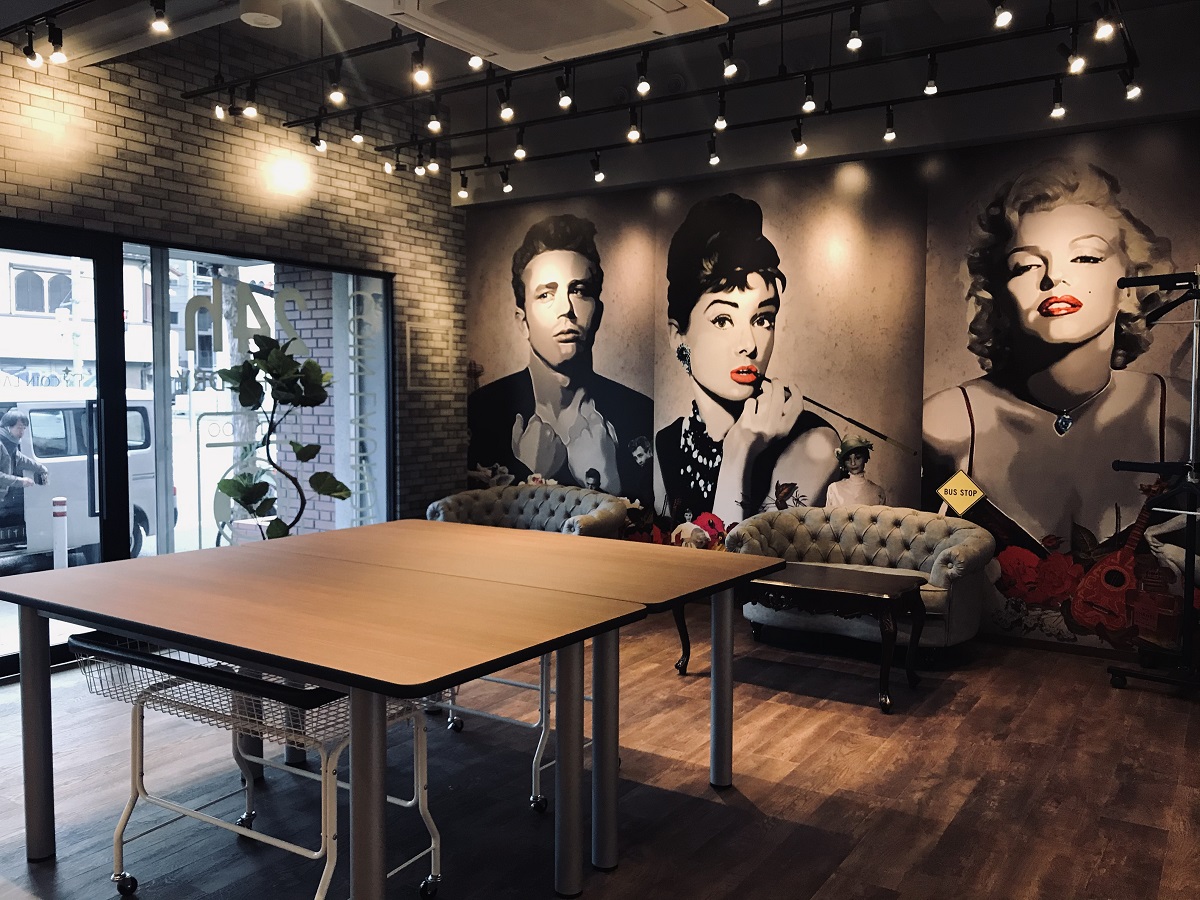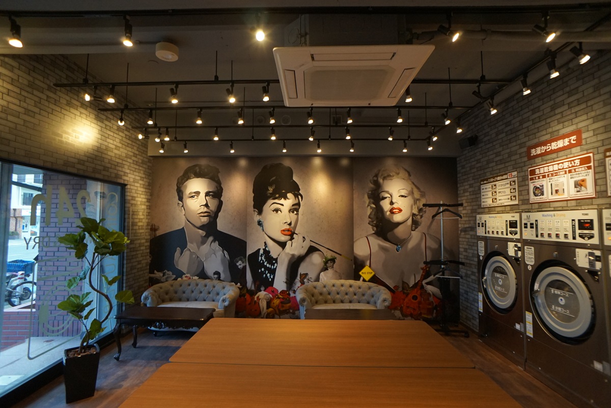 壁一面 マリリンモンロー/オードリーヘップバーン/ジェームスディーンの輸入クロスで映えるコインランドリーに 大阪市西区北堀江 店舗・オフィス 大阪市西区北堀江 こだわりポイント 工事概要 建物概要 コインランドリー Before After 比較 Before画像 After画像 Gallery