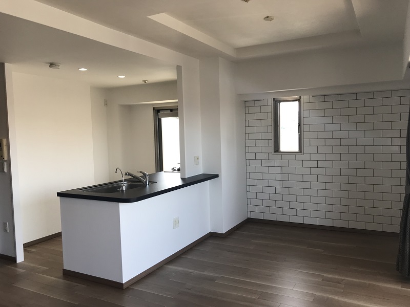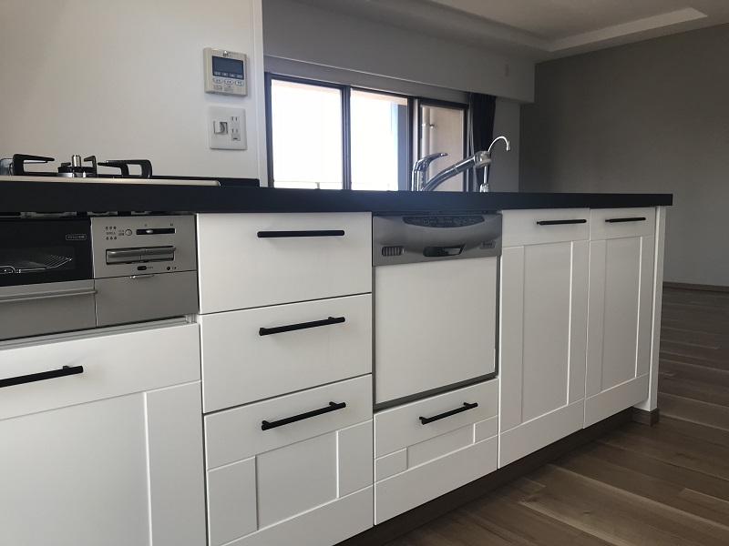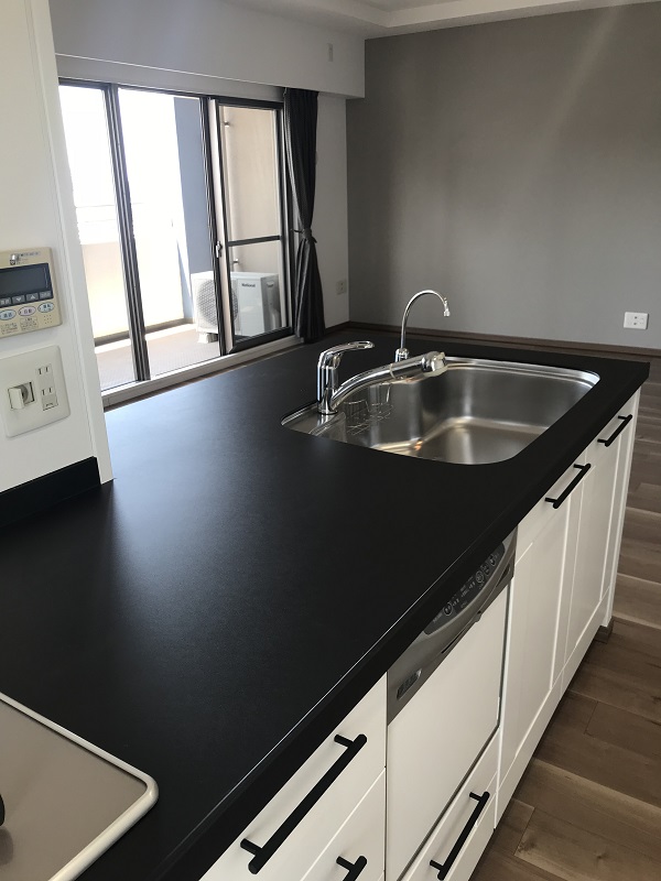 キッチンを取り替えることなくダイノックシートで一新 中古マンション 大阪府寝屋川市 こだわりポイント 工事概要 建物概要 中古マンション 施工箇所 キッチン Before After 比較 Before画像 After画像 Gallery