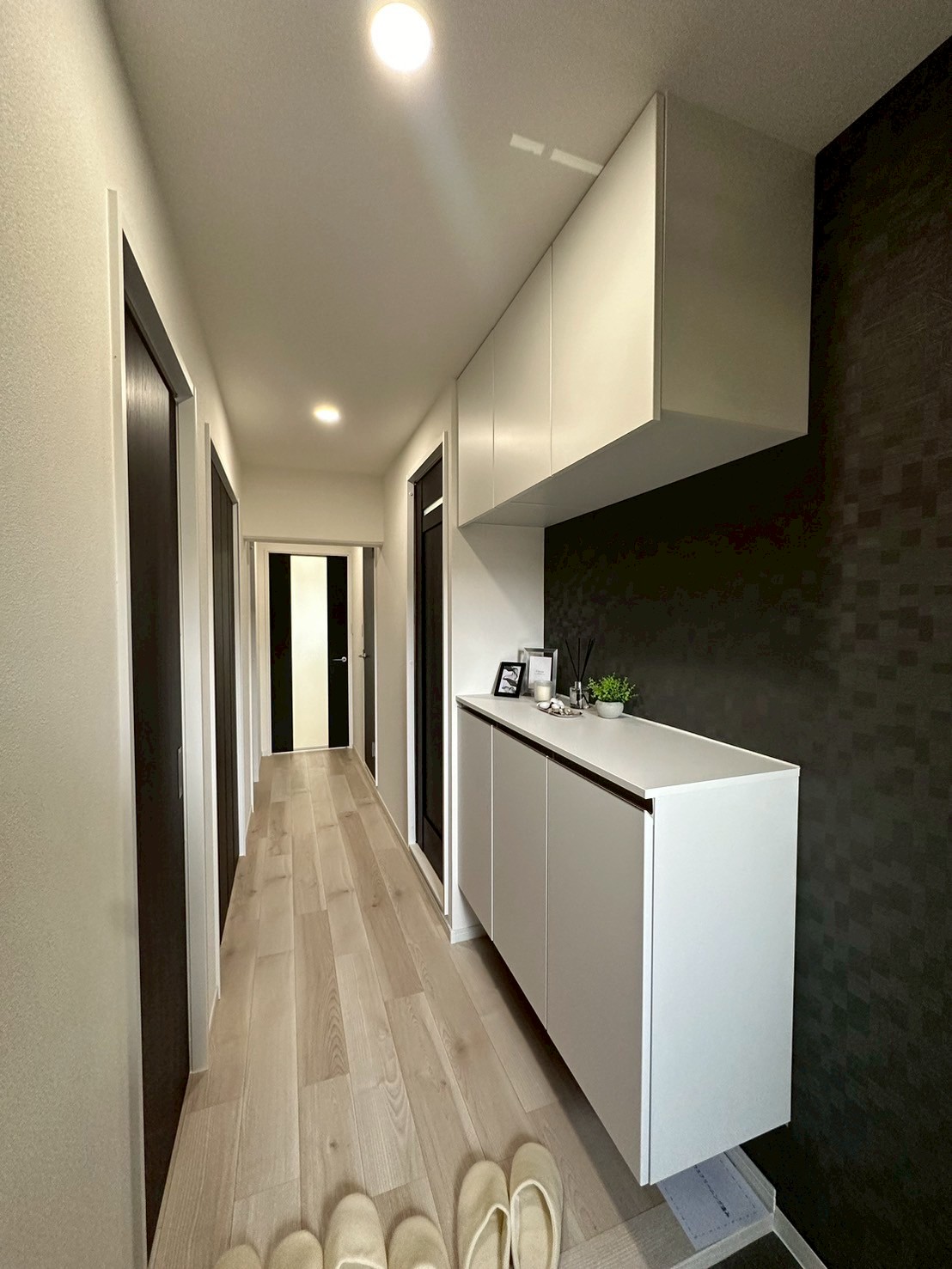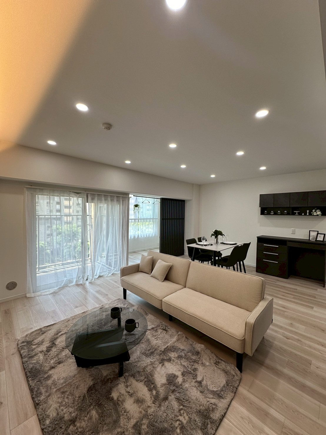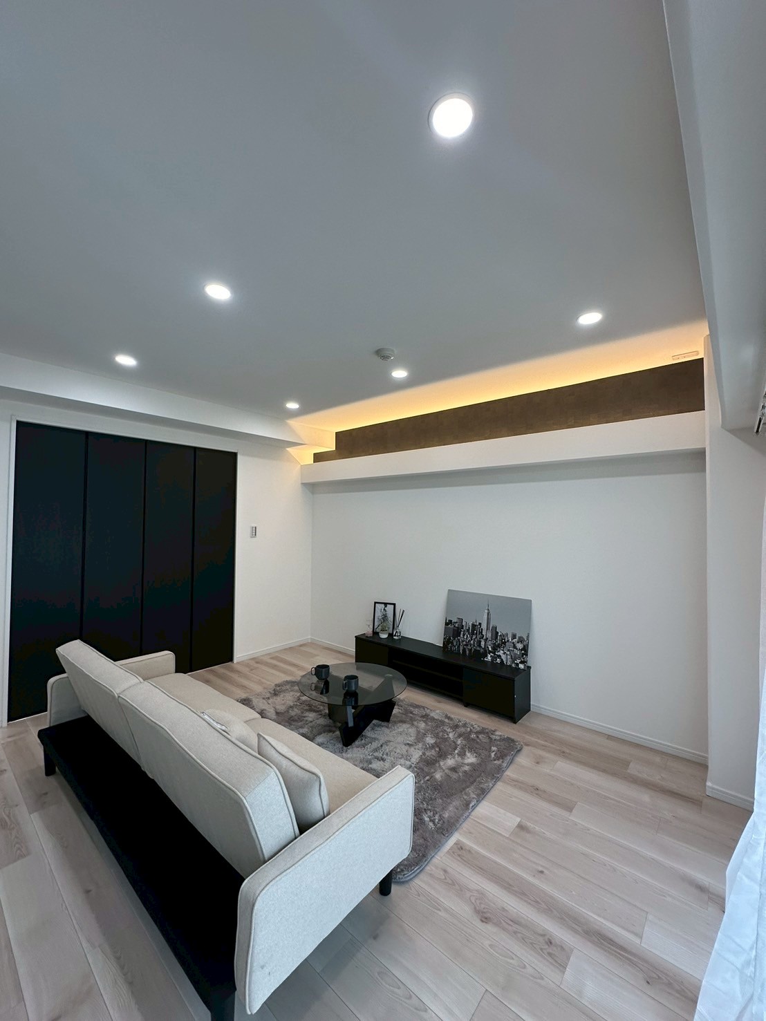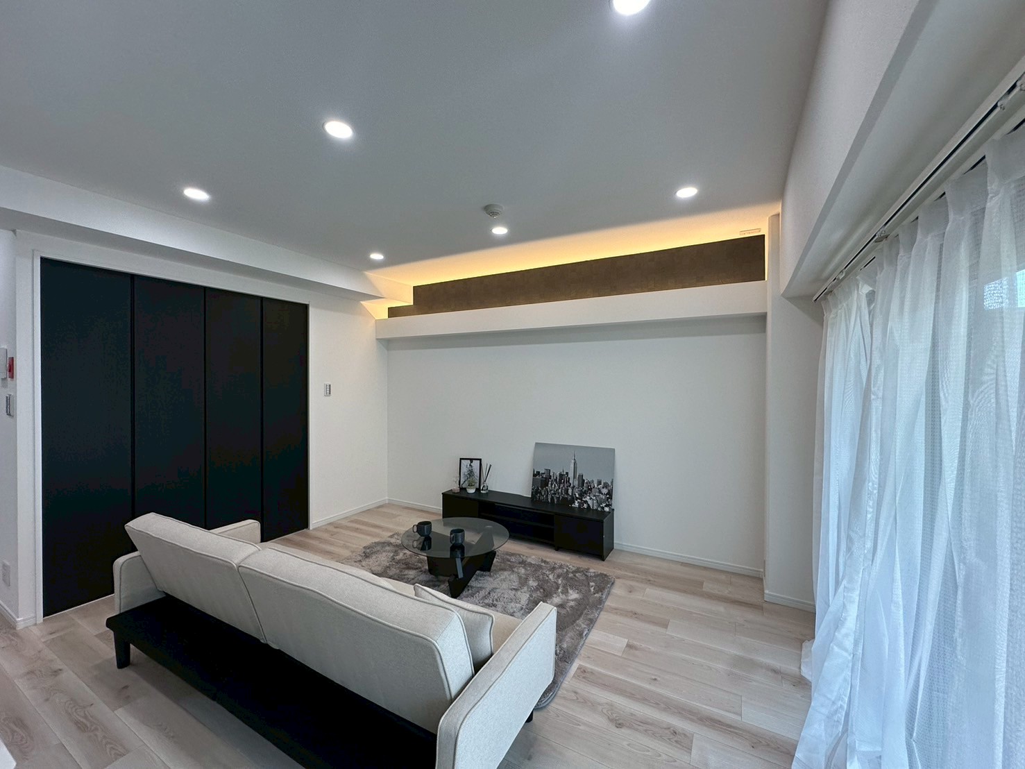 ベースカラーホワイト。アクセントにブラックを。スタイリッシュなモノトーンインテリアで仕上げたマンションフルリノベ 中古マンション 大阪府枚方市 CHECK! モノトーンなインテリアでとてもおしゃれなお家に仕上がりました! こだわりポイント こだわりポイント 工事概要 完工日 2025/10/16 建物概要 中古マンション 施工箇所 リビング・キッチン・水回り(お風呂・トイレ) 玄関 費用 500万円〜800万円 施工期間 1ヶ月 Before After 比較 Before画像 After画像 商品情報 リビング パナソニック・・・ キッチン リクシル・・・ ダイニング ・ダイニングテーブル: ・ソファ: ・照明: Gallery