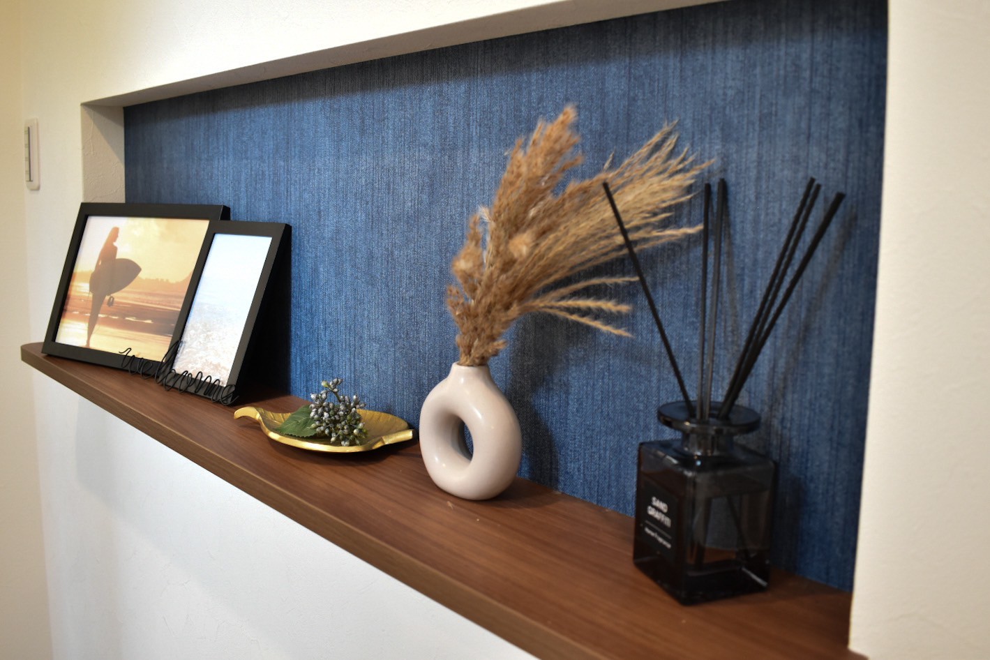 ワイドなカップボードも新設したので、食器類や調理家電もすっきり配置できます。