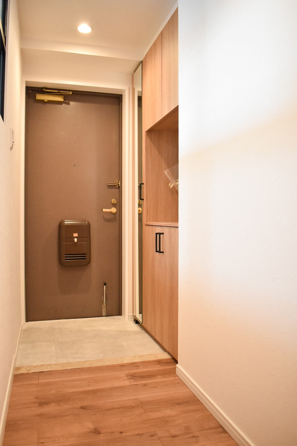 絶妙な色味がかわいい。オーク柄木目×グレー系クロスでカフェ風リノベ。
