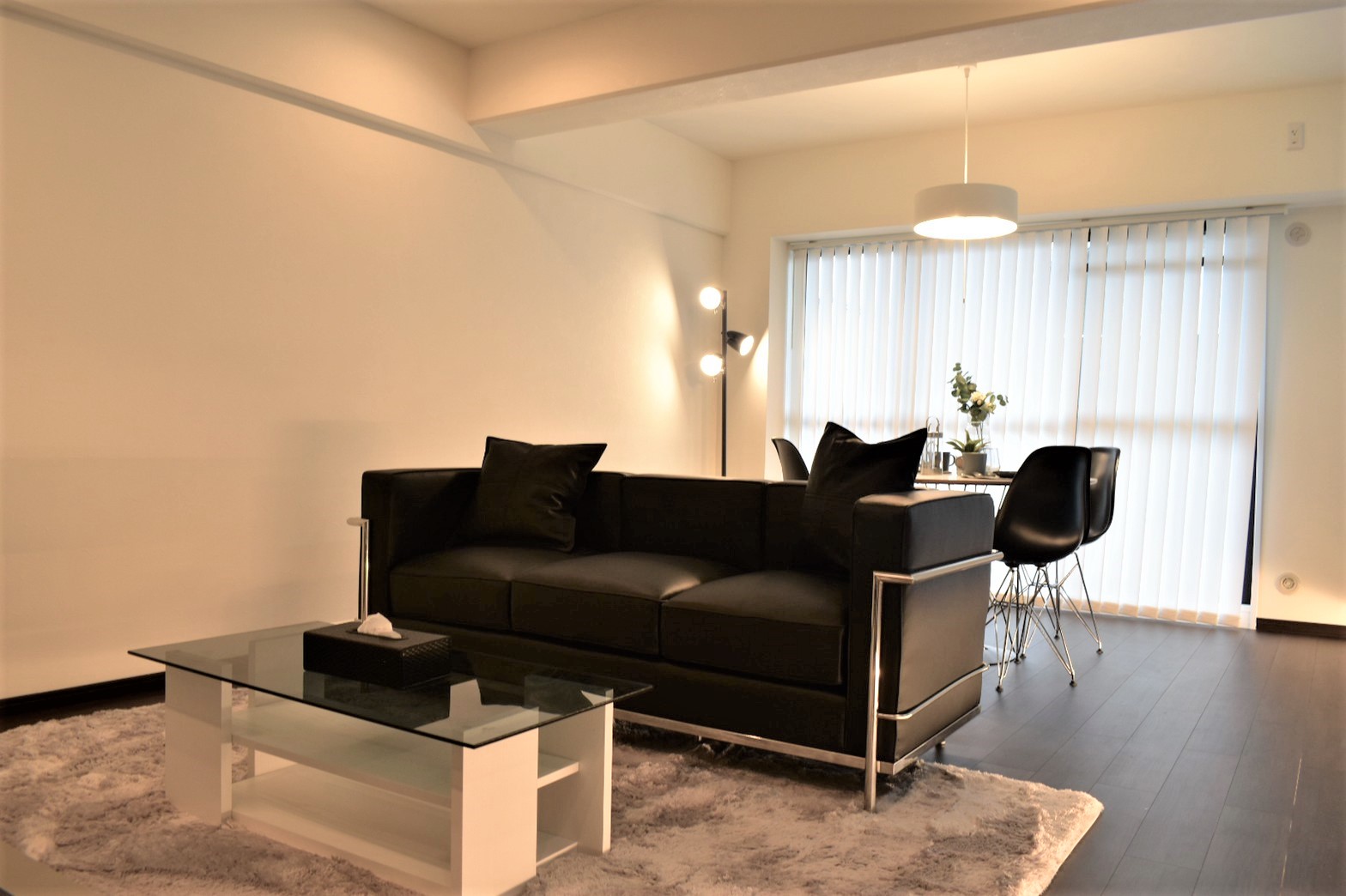 設備やクロスなど、各所に締め色となるブラック系を採用して、シックなホテルライクのお部屋へ大変身。