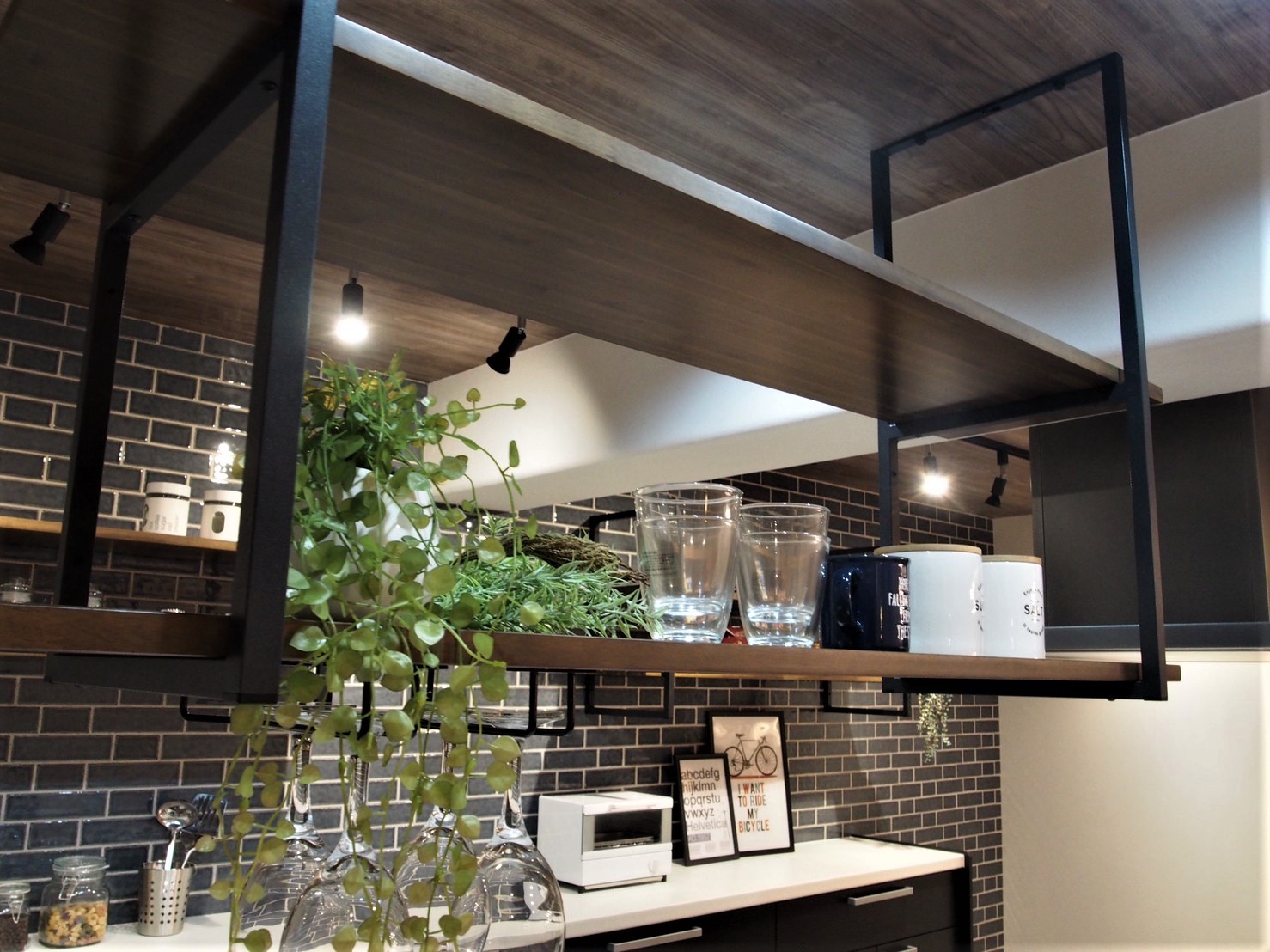 せっかくの広々空間を活かすためオープンなアイアンラックでの収納を採用。