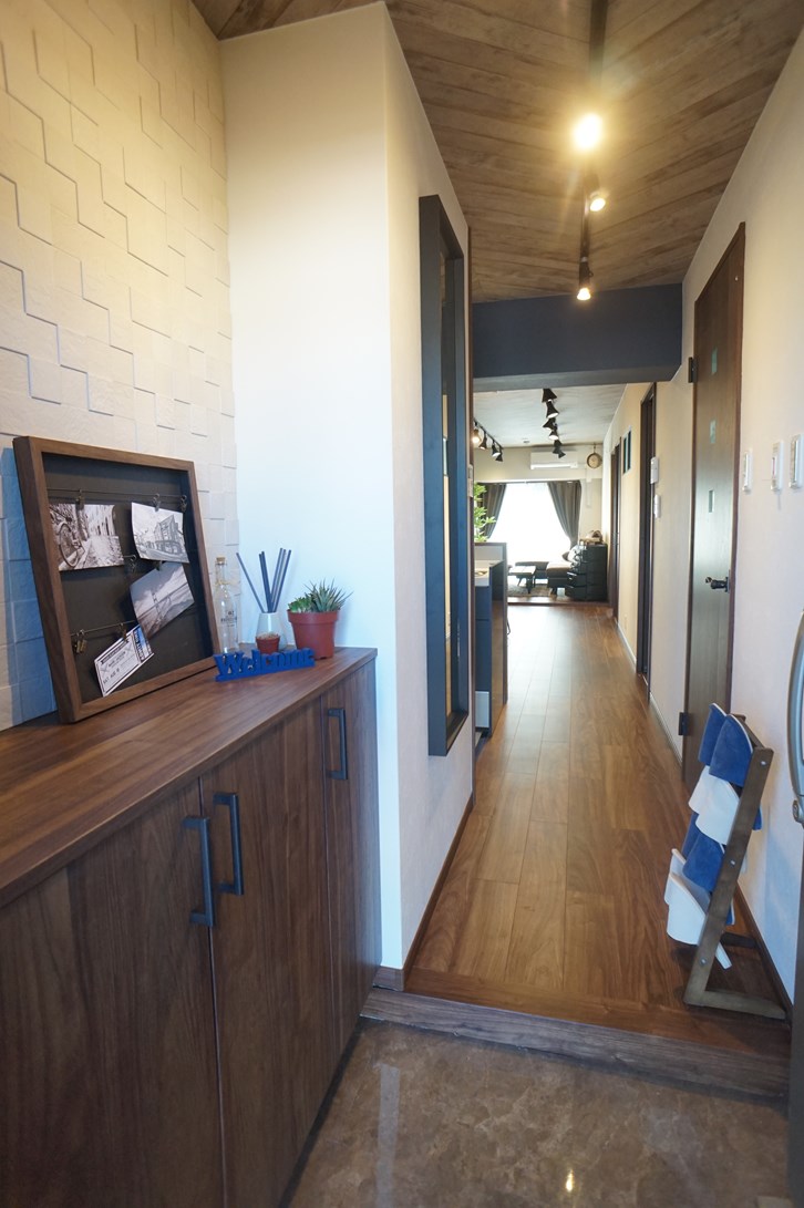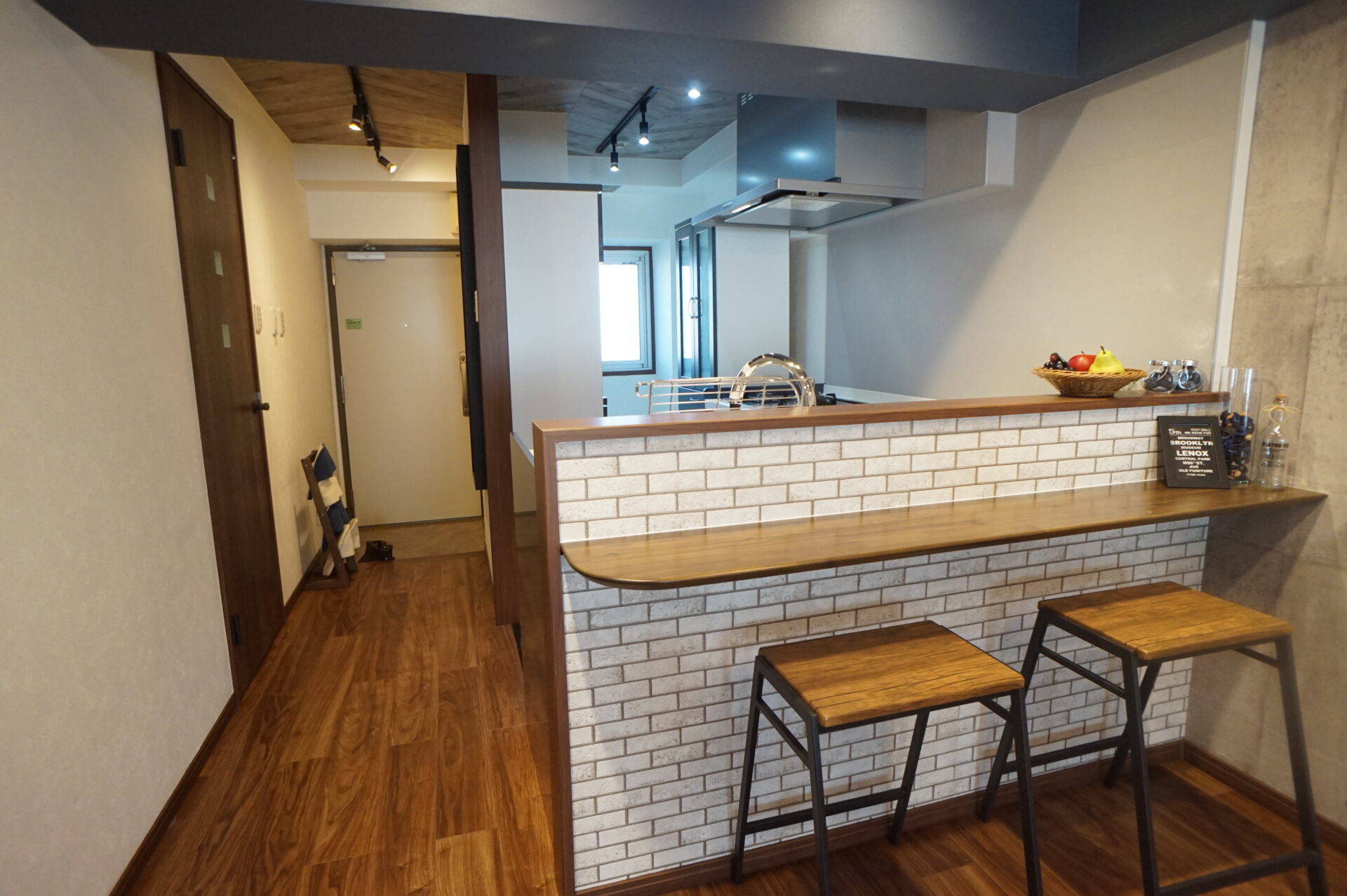 男前インテリアが光る インダストリアルリノベーション 中古マンション 大阪府枚方市 CHECK! 色×柄×素材感で生み出すリノベーション こだわりポイント 築年数50年超えのマンションも、フルリノベーションで生まれ変わります。 コンクリート風のクロス×ダークブラウンのフローリングで落ち着いたイメージに。 天井には人気のヘリンボーン柄のクロスを採用しました。 アイアン調・レザー調の家具を設置すれば、隠れ家のようなインダストリアルルームの完成です。 【施工担当】上野太一 工事概要 完工日 2019/12/25 建物概要 中古マンション 費用 600~800万円 施工期間 1ヶ月 Before After 比較 Before画像 After画像 Gallery