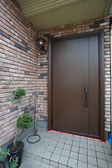 レストルーム改修 玄関ドア取り替え 玄関ホールクロス貼替 リビング内装クロス貼替 外構改修工事