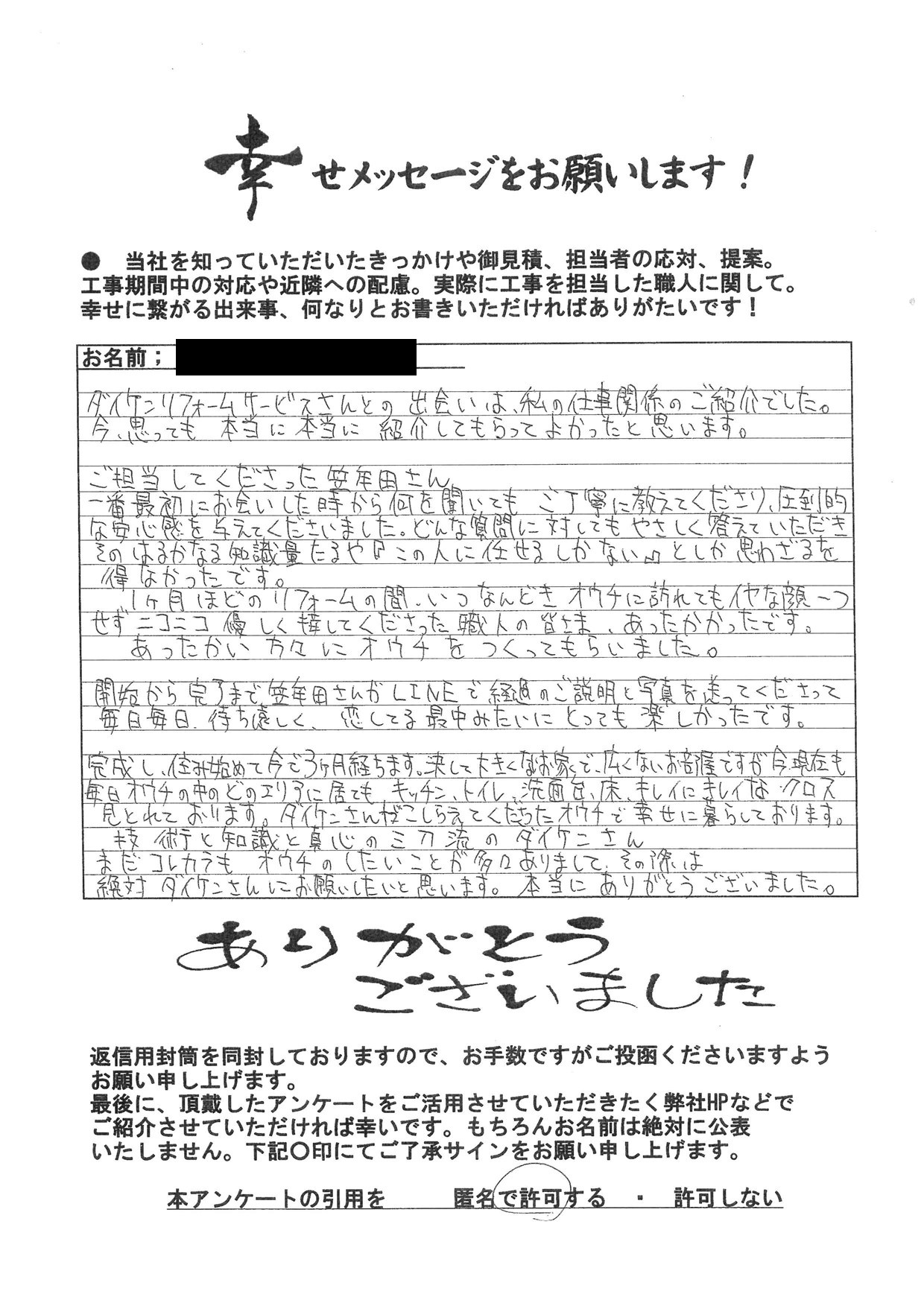 絶対ダイケンさんにお願いしたいと思います。本当にありがとうございました。