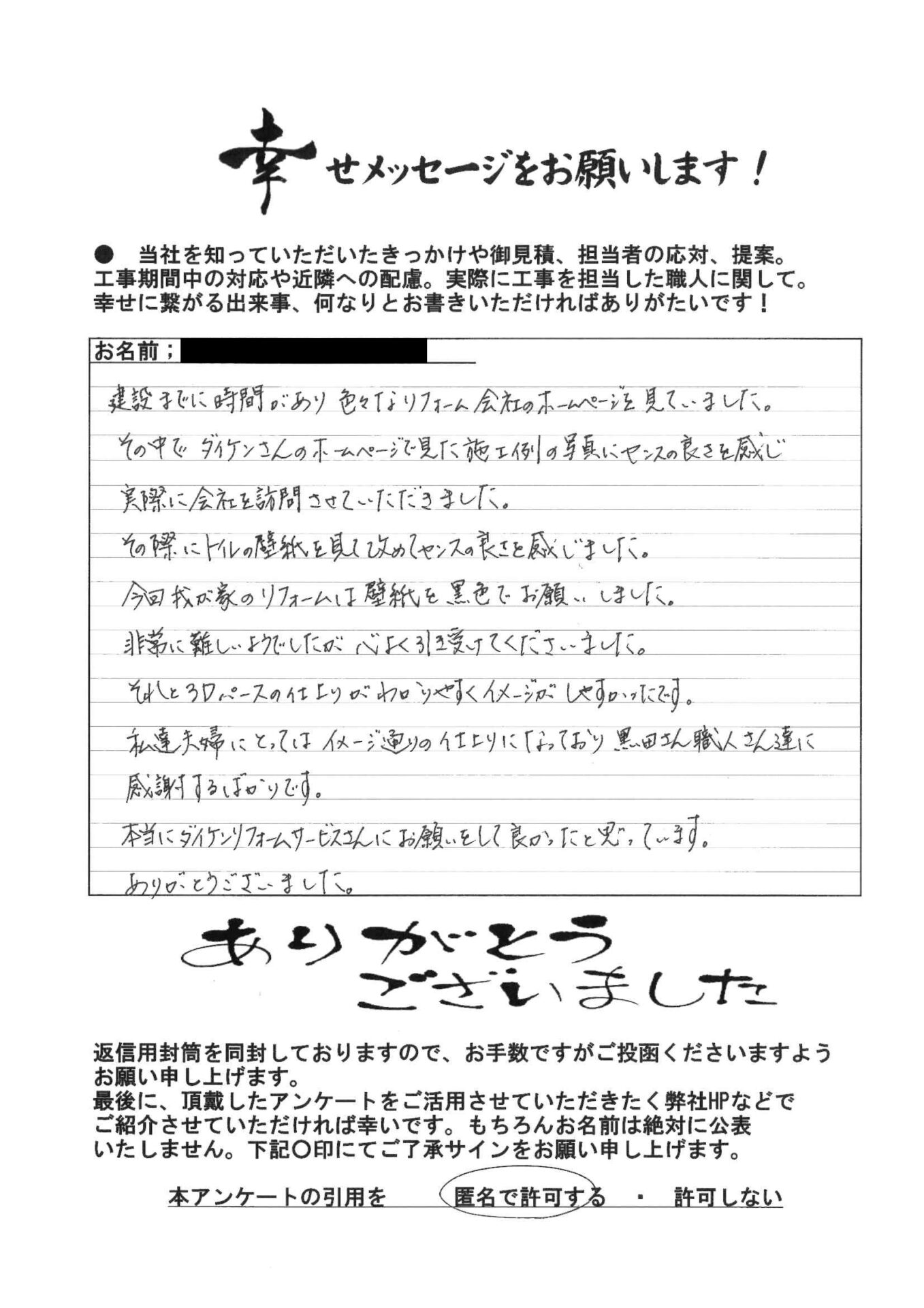 本当にダイケンリフォームサービスさんにお願いをして良かったと思っています。